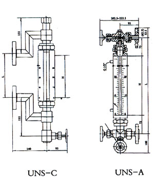 UNS(UGS)系列彩色石英管液位計(jì)(以下簡(jiǎn)稱彩色液位計(jì))是采用國內(nèi)外高科技研制而成,它是普通玻璃板液位計(jì)更新?lián)Q代產(chǎn)品,它廣泛用于石油、化工、電力、冶金等行業(yè)各種透明液體容器和鍋爐上,如,水、汽油、液化氣、液氨、丙烷、丙烯,酸等油品和化工原料的液位測(cè)量,同時(shí)適用于二種不同介質(zhì)密度的界面測(cè)量。彩色液位計(jì)安裝在各種容器及鍋爐上,直接觀測(cè)到液位變化,液相顯示呈現(xiàn)綠色,氣相顯示呈現(xiàn)紅色,界面測(cè)量呈三色分界面。液、氣顯示反差很大,在遠(yuǎn)距離觀察、夜間巡視顯明清晰。它成功地克服了普通板式液位基本中,密封面積打、易滲漏,顯示不清晰,在很近距離難易判斷的缺點(diǎn)。它是目前國內(nèi)外理想的直讀式液位計(jì)。 |