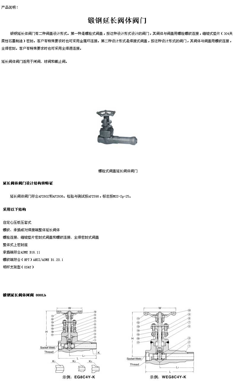 延長閥體閥門符合API602.檢驗與測試按API598,標記按MSS-SP-25.