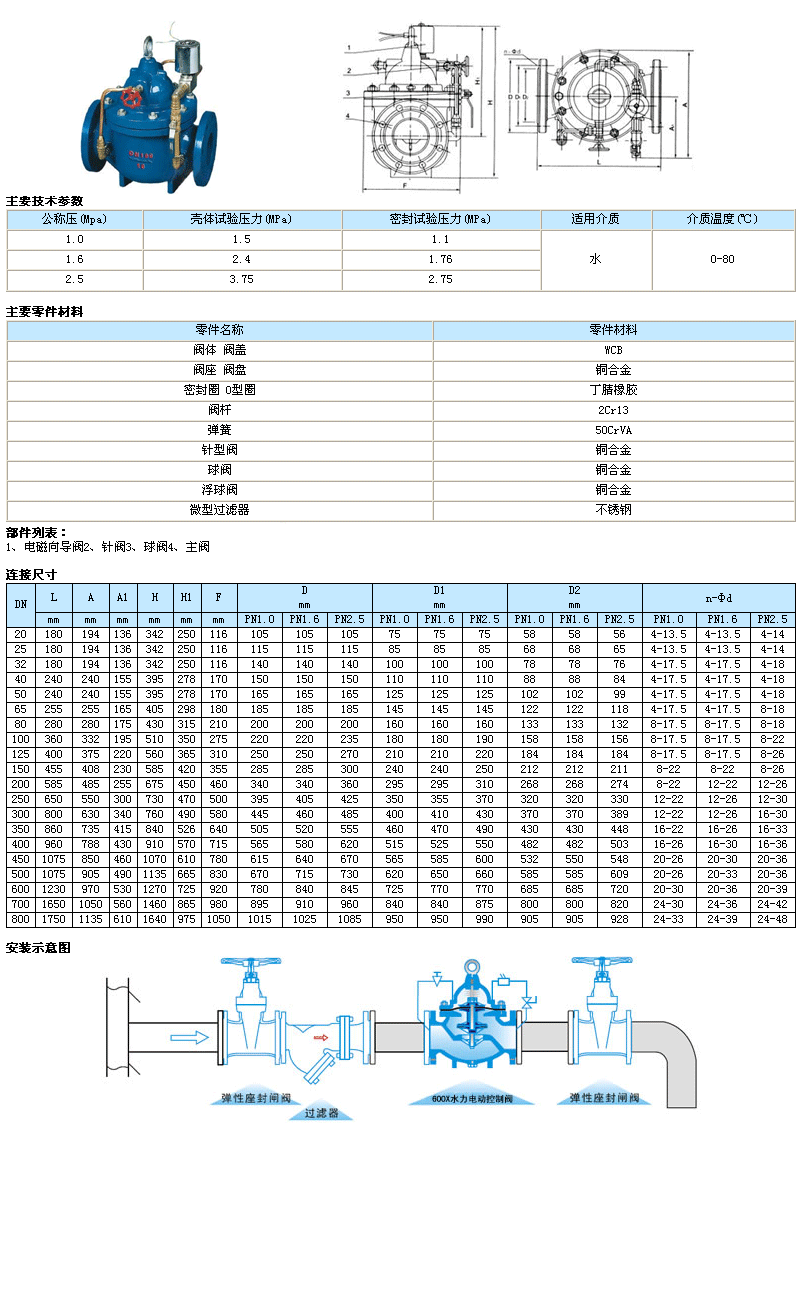 600X水力電動控制閥由主閥、電磁導閥、針閥、球閥、微形過濾器和壓力表組成水力控制接管系統(tǒng)。通過電磁導閥可以實現(xiàn)對閥門開啟和關閉的遙控。加裝附加裝置后,可控制開啟和關閉的速度。本產(chǎn)品利用導閥控制閥門的開啟和關閉,節(jié)省能源?纱嫫渌y門大型電動裝置。本系列閥門產(chǎn)品廣泛用于高層建筑、生活區(qū)等供水管網(wǎng)系統(tǒng)及城市供水工程。當閥門從進口端給水時,水流流過針閥進入主閥控制室,當電磁導閥打開時,控制室內(nèi)的水經(jīng)電磁導閥、球閥流出。球閥開度大于針閥開度,主閥控制室內(nèi)壓力很低,主閥處于全開狀態(tài)。